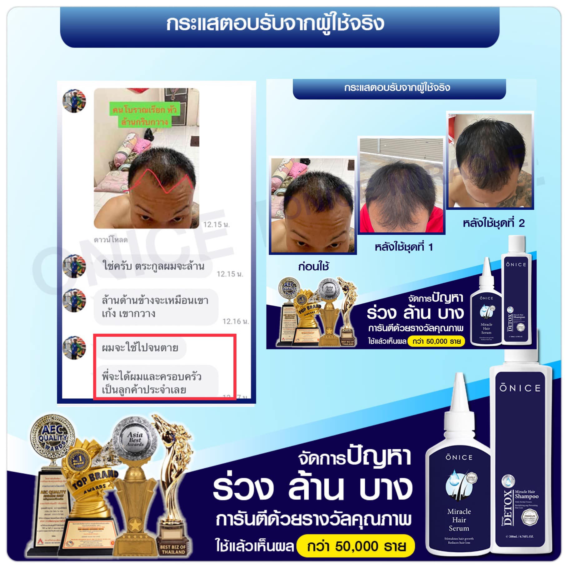 - ลดการหลุดร่วงของเส้นผม แก้ปัญหาผมบาง