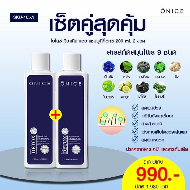 2. แชมพูสูตรดีทอกซ์ แชมพูจากธรรมชาติ ONICE MIRACLE HAIR SHAMPOO ขนาด 200ml.